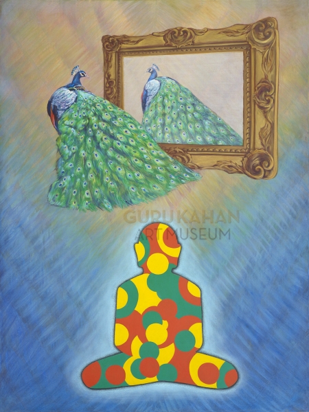 जैसे गहरा नीला, हरा, पीला आदि (वर्णरूप) भाव, जो कि मोर के अपने स्वभाव से मोर के द्वारा भाये जाते हैं ( होते हैं ) वे मोर ही हैं और (दर्पण में प्रतिबिंबितरूप से दिखाई देनेवाला) गहरा नीला, हरा, पीला इत्यादि भाव, जो कि (दर्पण) की स्वच्छता के विकारमात्र से दर्पण के द्वारा भाये जाते हैं, वे दर्पण ही हैं।